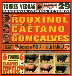Frente a três toiros da ganadaria Murteira Grave foram solistas José Henriques que após alguns percalços nas ajudas consumou à 5ª tentativa, Francisco Baltazar que concretizou à 2ª tentativa e Nuno Inácio que à 1ª tentativa efectuou uma valente pega.